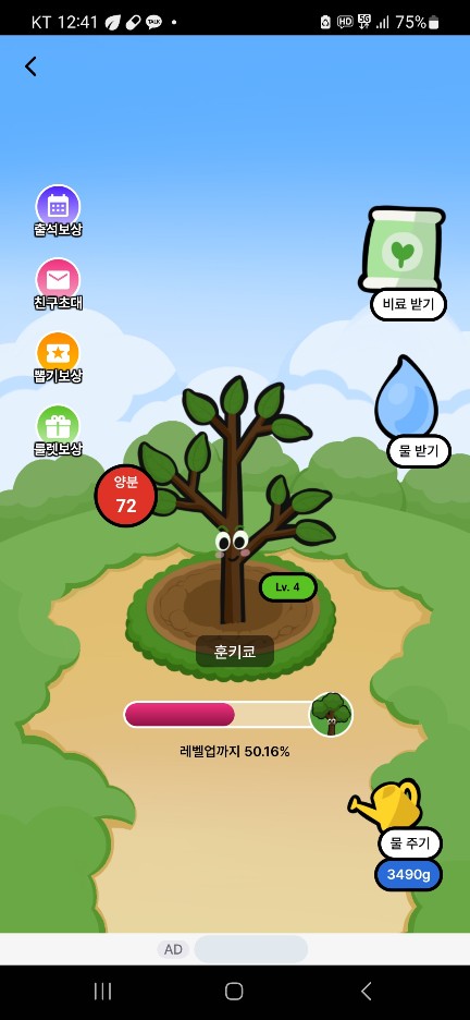 정말 열심히 키워봤는데, 아직 lv.5 입니다. ㅠ (위의 그림에는 lv.4 일때 남긴 사진입니다.) 나무를 lv.6까지 키우는 경우 3,000 포인트를 지급합니다. 다만 꾸준히 비료와 물을 주는 경우 한달 이상의 기간이 필요하다고 보입니다.
