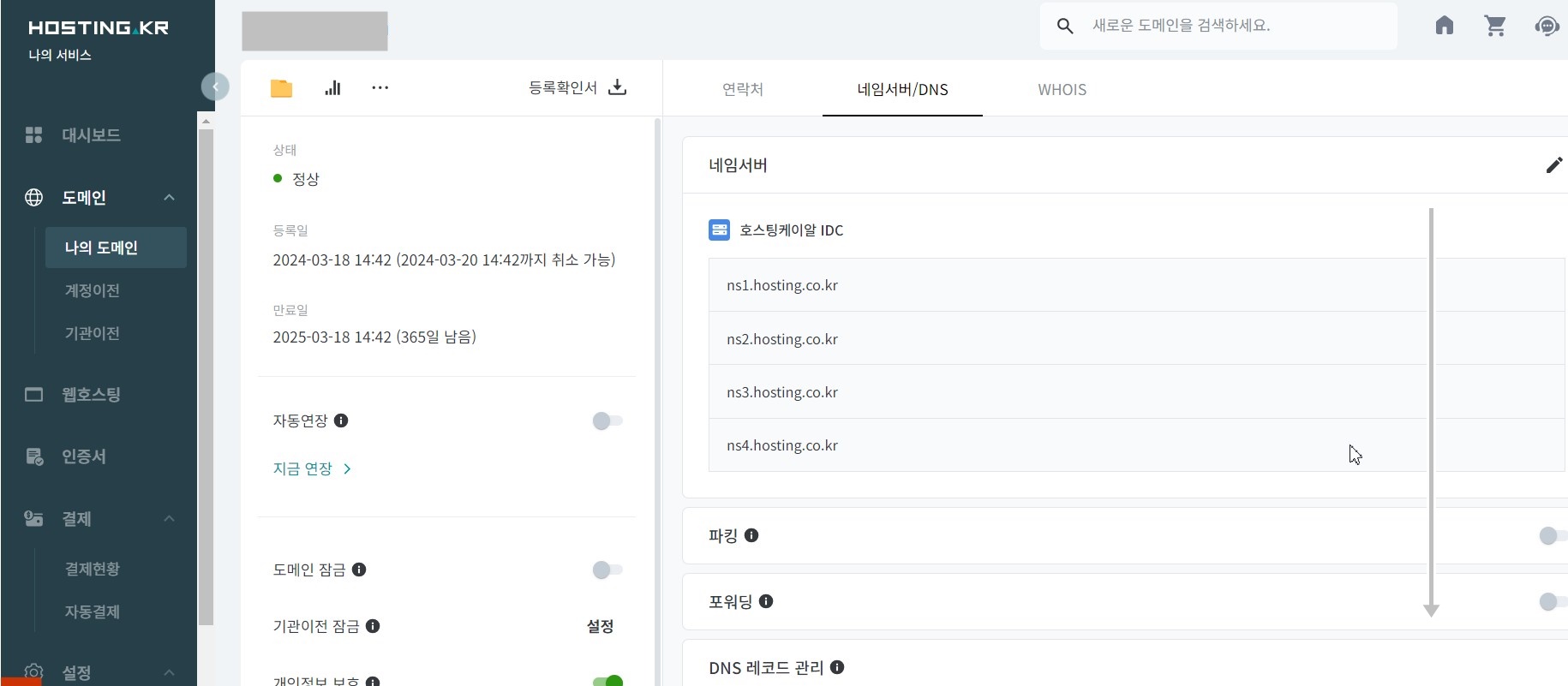 4. 호스팅 KR에서 구매한 도메인 주소를 기입한 후, 변경 사항을 저장 합니다.