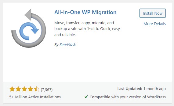 기존 워드프레스 플러그인에 들어가 All-in One WP Migarion 을 설치합니다.