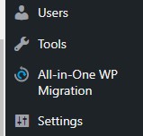신규 워드프레스 사이트에서 All-in one WP Migarion 플러그인의 Import를 선택합니다.