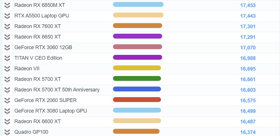 | Radeon RX 5700 XT 50th Anniversary | 16,603 |