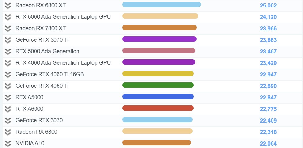 | RTX 4000 Ada Generation Laptop GPU | 23,429 |