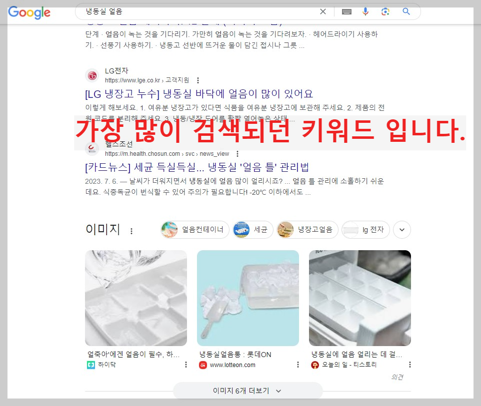 가장 많이 검색되던 키워드를 입력해도 검색 페이지에 노출이 되지 않았습니다.