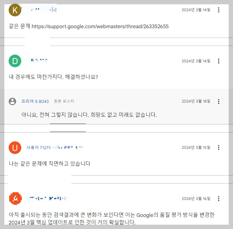 구글 공지를 보았지만, 제 사이트가 저기에 해당되는 내용은 없다고 생각이 들었습니다.