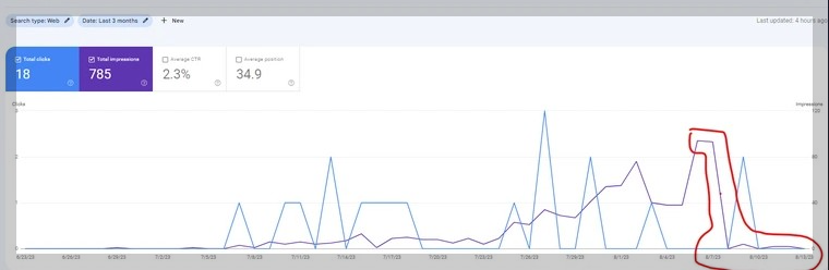 실제, 저 중 하나의 도메인은 노출이 400~600 정도 나오던 것이 0으로 수렴하였습니다.