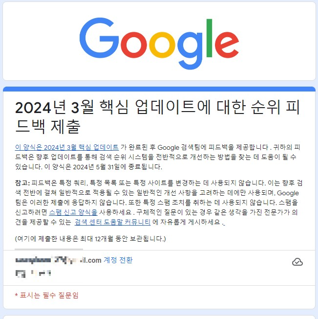 해당 피드백은 2024년 5월 31일 까지 제출하는 것으로 만약 동일한 현상을 경험하신 분들은 제출할 필요가 있지 않나 생각합니다.