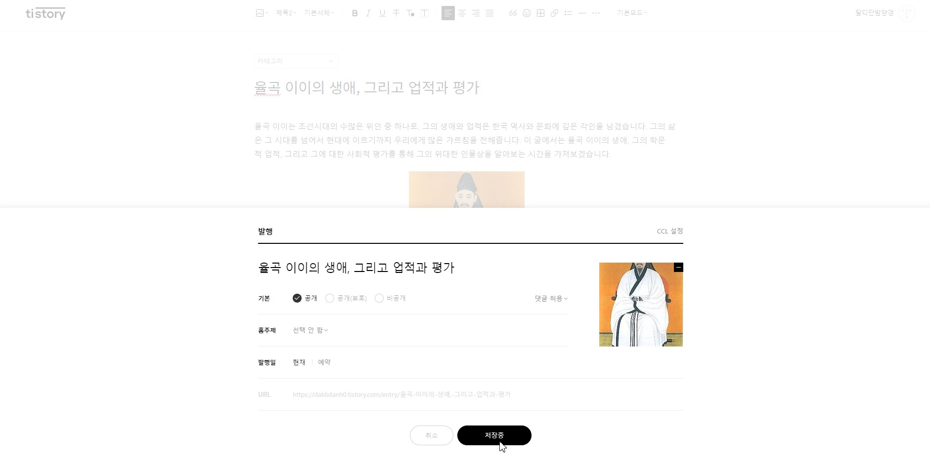 글의 작성이 완료되면 저장하여 업로드 해줍니다.