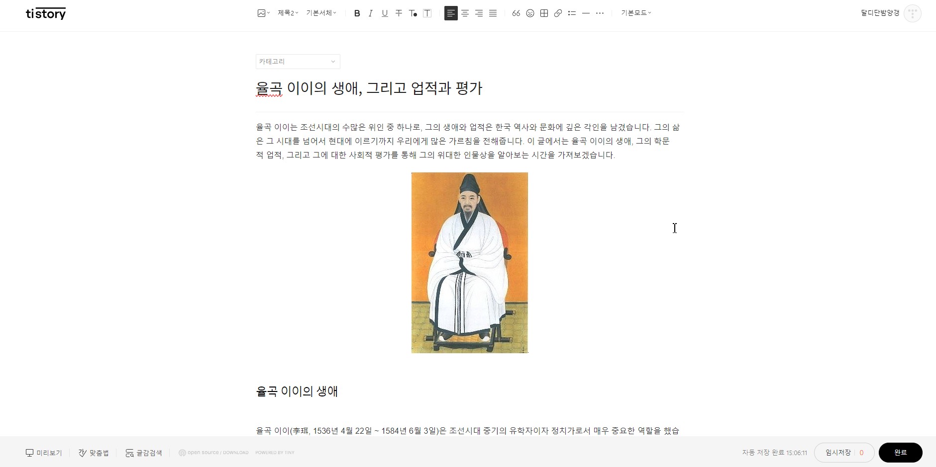 즉, 아래의 소 제목은< 율곡 이이의 생애> ,<업적> , <평가>로 나누어서 쓸 생각입니다.