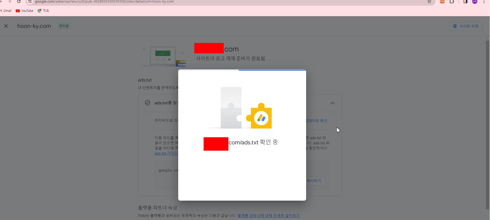 상단의 경고 문구는 그대로 존재하지만, 아래 ads.txt 상태는 승인됨으로 변경되었음을 볼 수 있습니다.