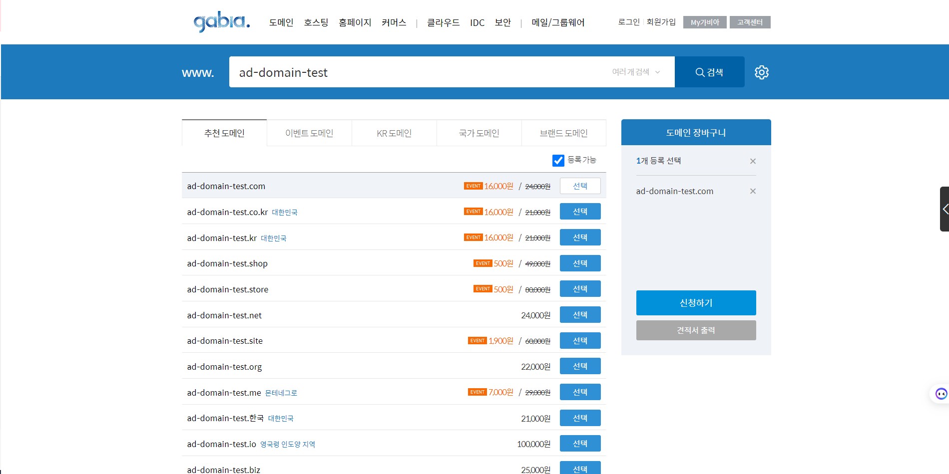 가비아 사이트 입니다.